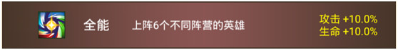 全能光环:全能光环在各色光环中英雄池是最深的,同时也是相对容易激活的。全能光环在英雄的选择和搭配上具有很大的自由度和灵活性,对资源的利用程度是最高的。对于新手玩家来说,在游戏前期可以利用自己抽到的英雄组一套全能光环进行战斗,而不必去刻意的追求双色乃至纯色光环,做到资源的最大利用。