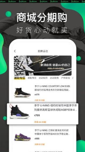 购物软件,作为现在的年轻人,外面想买的东西太多了,不是口袋里的钱不够,就是还没有到发工资的日子,于是就放弃了自己想要的东西。想要买自己喜欢的东西,但又担心花了口袋里的钱买了心仪的东西之后,以后的日常开销无法继续进行,你不用为这些发愁,快来下载微博分期商城app到手机,打开手机APP软件,这里有你所有想要的东西,海量潮流商品随你挑,好货心动就买,商城支持分期付款,非常方便。该软件致力于打造一个年轻人最值得信赖的消费分期平台,在这里为用户提供了海量运动潮牌、时尚鞋服、手机数码、美妆奢品等商品自由挑选,并在这里的所有的商品都是有质量有保障的,支持零首付,和3/6/12等多期来进行购买,十分方便。