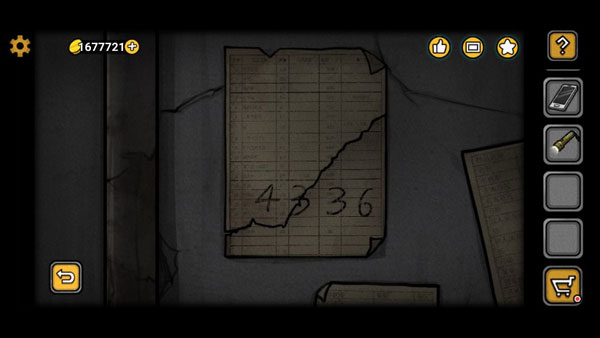 3、下图房间内黄框处点击放大后使用手电,得到纸张碎片。纸张碎片对蓝框处点击放大后使用,得到密码提示:4336。这个密码提示去绿框放大后的锁使用,输入4336后柜子打开,同时得到3号锁、柜子里的圆形阀门。圆形阀门对白框处使用后向下去机舱的通路打开,使用手电筒照射后,前往机舱。