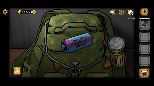 2、下图红框处直接点击,进入自己的背包,搜刮全部物品:绘本残页(1)、叶莉斯手机、电池、手电。之后直接查看没电的手电,放大后多次点击将电池装在手电里得到有电的手电。同时完成成就-合成道具。顺便将粉框处的手机拿上-得到杰夫手机。