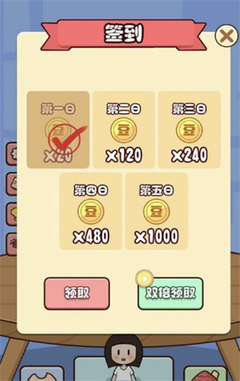 2、豆腐女孩每天上线都可以领取不同的奖励,收集金币可以在商店帮助女孩购买各种不同的服装;