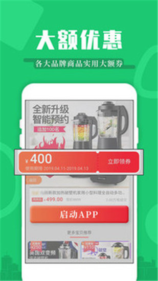 2、返利淘特价版专享优惠券,每天不定时更新,用券立减现金。