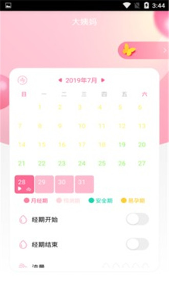 1、大姨妈来了app支持线上记录月经周期,可以自由选择具体日期;
