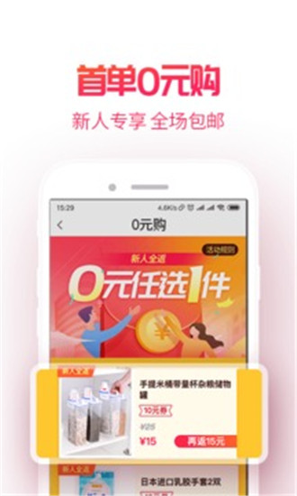 0元购:新人专享0元包邮购,全额返利免费送到家