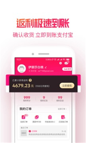急速到账:所有返现不需自己提现,快至30秒返利自动到账到支付宝