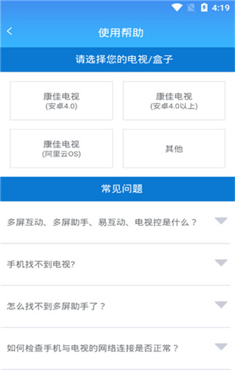 易互动是一款能够与电视机机顶盒配套使用的电视投屏管理软件。有了它,能够让手机与电视更好的实现互动。它拥有电视遥控器、视频播放、应用管理、电视垃圾清理等众多功能与一身,功能非常的强大,对我们的生活来说,非常是实用。有了易互动,无论你在什么地方,厨房、卧室,甚至是家外,用户只需打开手机上的该软件就能够实现与电视端的连接,用来控制电视的频道转换,再也不需要跟家里人抢遥控器了,轻轻松松就能够控制电视。软件界面简洁大方,操作非常的简单,能够兼容市面上大部分的电视机顶盒与智能电视,其中包括小米盒子、天猫魔盒、开博尔等各种设备,是有史以来适配度最广的手机投屏遥控软件!并且还能通过语音调侃智能电视机,是不是非常的好用又有趣呢!快来下载使用吧!