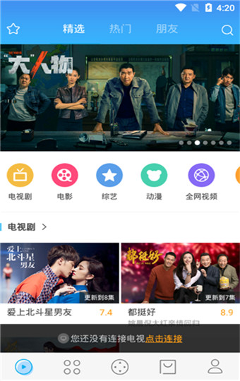 3、电视传屏:您可以把电视上的画面、声音同步至手机上,带到家中任何地方观看,从此精彩镜头不再错过。