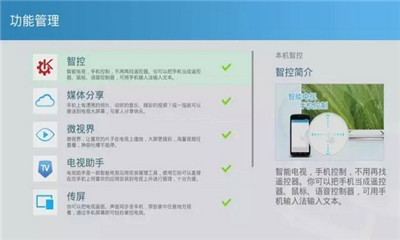 4、应用助手:通过手机直接安装应用到电视,我的应用里直接打开应用立马用起来,可卸载、更新应用。不用为管理应用而烦恼。