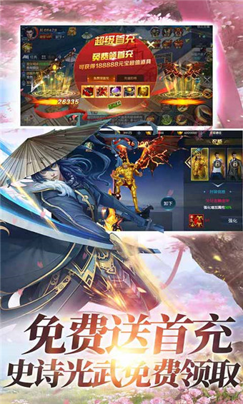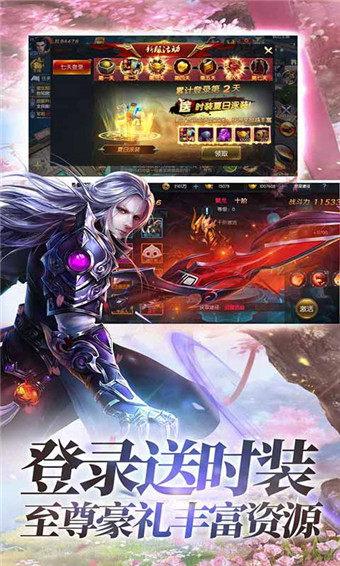 2、上线即送至尊满级V13,加强版VIP礼包免费送,还送88888绑元,888万金币。
