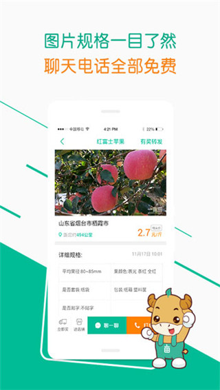 5、供应商抢单功能:优化原有报价系统,新功能可以为卖家提供农产品上传图片、视频等细节,直接展示卖家实力。同样,作为卖家可以通过抢单功能联系买家,最终达成贸易对接。