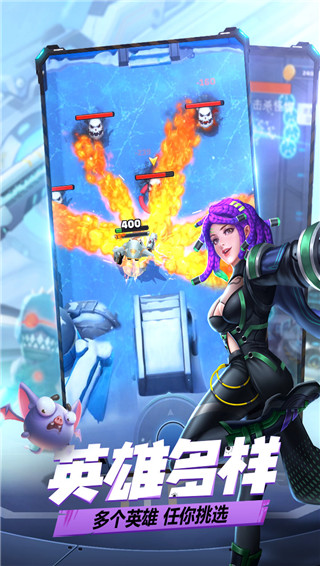 2、多英雄养成给你全新的打僵尸体验,技能无限叠加对抗弹幕式攻击。