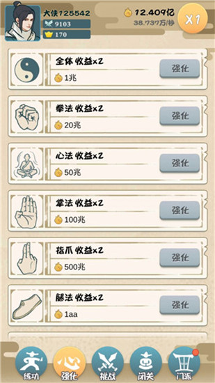 武侠手游当中,我们的玩家小伙伴们将要扮演一名初出茅庐的侠客,为了复兴门派,开始修习武功,寻找江湖秘藏的各类武功秘籍,为拯救天下苍生献出一己之力。在这里,你可以修炼、进阶、突破各种秘传武功,体会到心法、拳法、腿法、剑法、刀法等武学的魅力,领会传统武学的博大精深。还可以在游戏中挑战各大门派,获得各类宝物,体验锄强扶弱的快感,成为为国为民的侠之大者。另外除了修炼武功秘籍之外,我们还能够不断地强化经脉、闭关聚气,不断提升自身战力,令自己在比武切磋中立于不败之地。我也是大侠游戏中还有生动感人的剧情故事、富有趣味的丹药炼制过程,为我们忠实的江湖玩家还原一个江湖味十足的侠客世界。