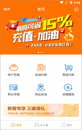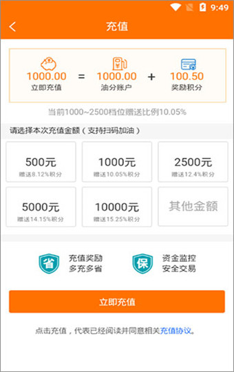 赚钱!用小猪加油充值付款,最高可省15%,没用完的余额还可以积分形式赚钱!加油消费补贴的积分,不仅可兑换直通车内任意服务,还可用于加油或提现,灵活方便。