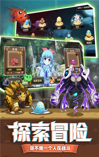 冒险解谜手游。游戏采用了Q版的画风,Q萌的怪物,十分的可爱。在游戏中,拥有众多的怪物,10打种族300种的怪物,史莱姆系、龙系、鸟系、兽系、恶魔系、虫系、物质系、植物系等等,玩家可以在游戏中不断的收集这些怪物,还有更多的怪物等你来解锁哦。还有丰富的故事剧情,玩家还除了能够收集不同的怪物外,还能够体验到各种不同的情节内容,带给玩家更多的游戏乐趣。这里为大家带来的是