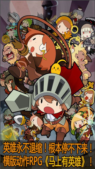 马上有英雄是一款挺有意思的动作RPG冒险手游。该款游戏采用横版的展现方式出现我们眼前,整个画风画面非常的精致卡通,刻画了许多Q萌可爱的英雄角色,并且游戏在玩法上较为简单,多种模式供我们选择,想体验哪种就体验哪种,让我们能有个多样的游玩体验,十分适合大家闲暇时进行玩耍。进入到游戏中,我们作为一名玩家,来到这个游戏世界中,为了拯救被邪恶势力抓走的公主,开始招募起各个强大、搭配的英雄角色,组成自己编排的强大队伍,踏上了拯救公主的道路,而为了一路上能够披荆斩棘,队伍强大是必要的,在进行整个路途中,我们会遇到许多的关卡、怪物,所以为了能够顺利迈进,我们对于队伍的战斗力提升,只会越来越高,而这时候队伍中有个强大的英雄角色,也会帮助到大家,所以努力召集提升英雄们,才能够最终救出国家的公主。欢迎各位感兴趣的小伙伴们从本站下载马上有英雄体验。