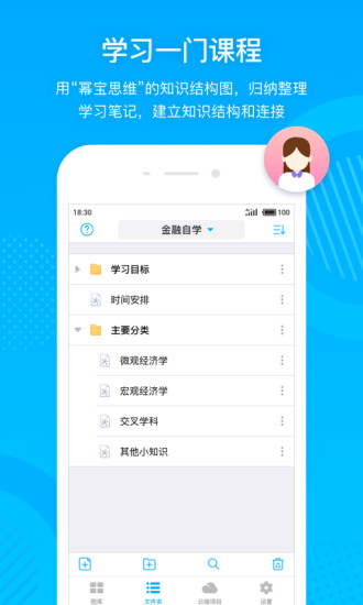 幂宝思维手机版是一款通过制作知识结构图帮助你整理笔记、快速记忆和深度思考的高效学习工具,同时也可以用它来捕捉灵感和想法,记录头脑风暴,支持云备份,多设备同步,帮你快速提升自己。无论是课堂笔记、项目报告,还是工作会议记录、流程图、任务图,亦或是即时的想法和创作灵感......这款软件都可以帮你轻松梳理知识笔记,高效做记录。用户只需选择一种布局样式,再通过简单的图形将你记录的知识关联起来,让复杂的事情简单化,形象化,让你快速理清思路,抓住重点,实现高效学习高效办公。不仅如此,它还可以帮我们将思维想法、知识笔记以图表展示,训练用户你的系统思维和全局观,通过简单可视化的结构图帮助你进行各种各样的深度学习和思考,而从这一点上我们也可以看出,这款幂宝思维绝对是学习和工作中不可或缺的好帮手。