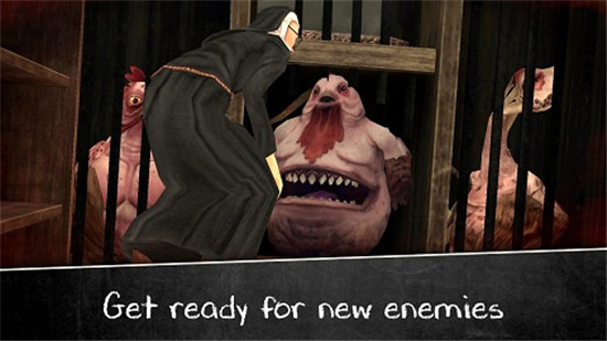 邪恶修女2手机版是一款以惊悚恐怖著名的刺激玩法类手游,游戏传承于第一代,画风相比起来也就没有多大的差距,不过小编个人感觉该游戏还是蛮适合玩玩的,毕竟玩的就是一个心跳嘛。游戏采取了第一视角,幽暗昏沉的背景画面,结合紧罗密布的背景音效,每一步的行动都让你紧张万分,并且经过优化之后的游戏画面,对比过去有着更精致的美术功底。此外游戏的玩法也很简单,和第一部差不多,修女院中的修女玛德琳和她的怪物会听到你行动时发出的任何声音,所以说玩家在一段的过程当中要尽量减少声音的馋,直至最后成功逃脱修女院。游戏难度分为四种,分别是鬼魂、容易、正常和困难,在不同难度中,敌人的行动和听觉有着明显差异,而你不但需要时刻注意怪物的动向,还要探索房间,玩家道具的收集,同样别忘了寻找藏身之地来躲避追踪哟~