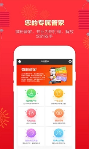 微粉管家帮您检测并清理死粉,准确无误,不发消息,对好友零打扰,看看谁删除了你,谁拉黑了你;支持一键备注、一键删除,从此拒绝死粉,不再充当路人甲;