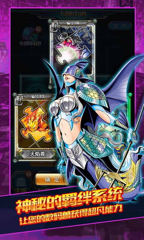 数码暴龙兽中数码兽是游戏的核心,那么在游戏中如何获取数码兽卡牌?本次小编就来介绍下数码暴龙兽卡牌获取途径——卡牌中心。1、玩家每次抽取可以花费100钻石获得至少3张羁绊卡牌碎片。