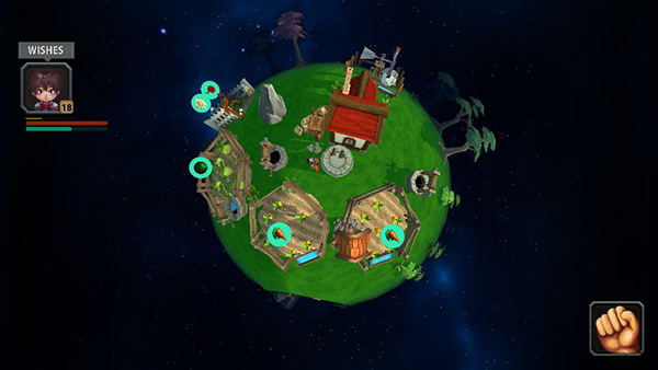 我们从一个空白而又充满惊喜的小星球开始。第一步是创建工作所需的工具:耕田的锄头、劈材的斧头、建筑用的锤子等。很快,我们就会发现在Deiland生活的乐趣:收集水果、第一次收获或看流星坠落。