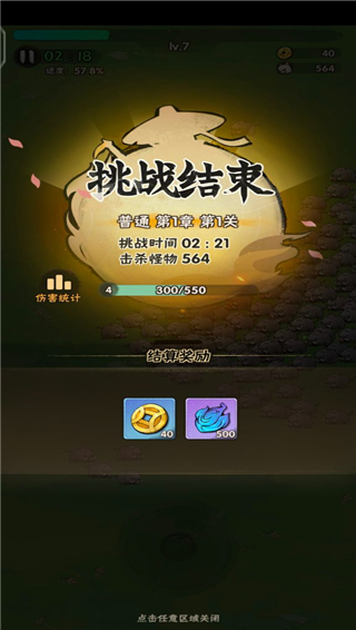 4、当我们被怪物杀死之后,游戏就会结束,系统会给出相应的奖励