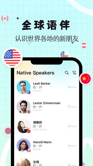 2、用户在软件上结识不同的各国友人,在交流中还能学习到其他语言和了解他国文化。