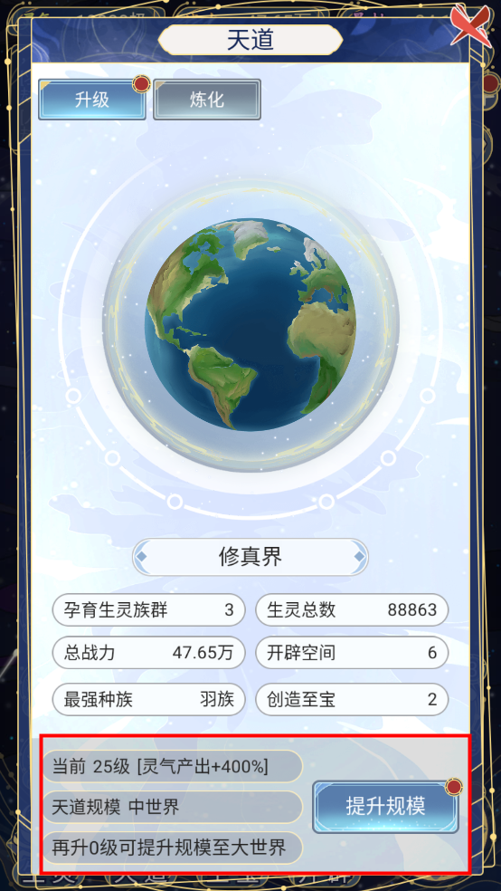 4、在免广告的环境中,玩家可以按照自己的节奏自由升级,不受任何限制,只要手指不觉得累,就可以迅速成为天道创造安卓版最新版游戏中的强者。