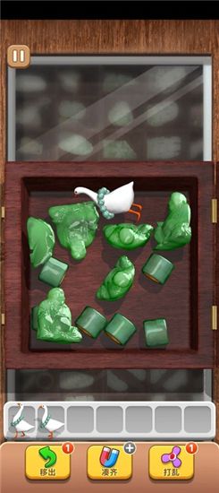 在抓大鹅官方免费版中,为玩家带来了三种不同的道具,移出,凑齐和打乱,移出可以将物品栏中的物品移出,凑齐会随机集齐物品栏中的一个物品进行消除,打乱可以将所有的物品顺序改变,当我们遇到无法消除的问题时,可以使用道具来帮助自己进行消除。