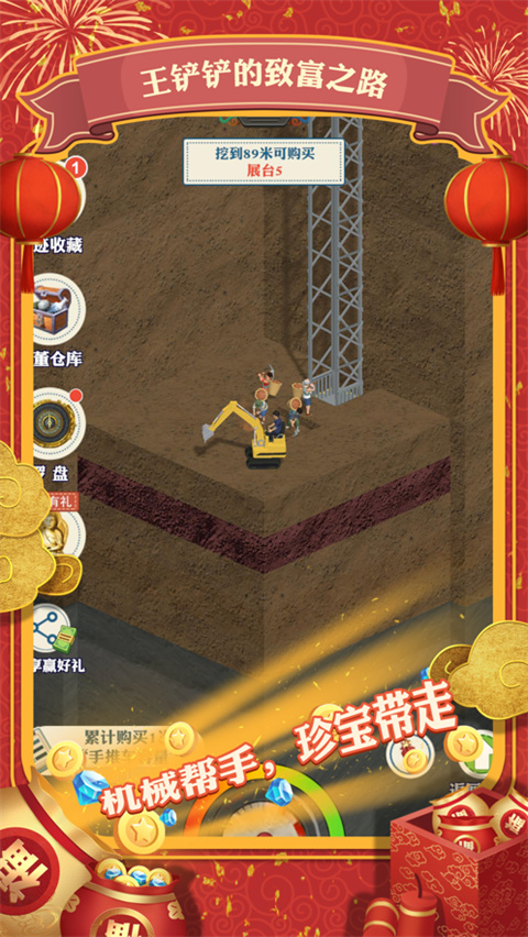 王铲铲的致富之路免广告版是一款玩法丰富、有趣且充满挑战性的模拟养成游戏。游戏中的挑战任务和展览古董的设定,为游戏增加了更多的乐趣和挑战性。玩家需要完成各种任务,解锁新的区域和宝藏,不断提升自己的能力和财富。同时,展览古董还可以为玩家带来额外的收益,喜欢的朋友快来下载体验吧!