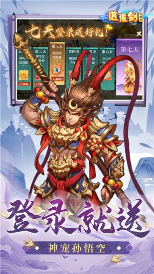 逍遥剑手游官方版是一款以西游记为蓝本打造的2D卡通风格的回合制手游,游戏制作精良,精致细腻的国风画面打造的云海仙山、天宫地府等奇幻场景,将带你沉浸式体验西游神话!且游戏福利丰富,上线永久0.1折充值福利震撼来袭,648礼包仅需6.48元,登录即送神话悟空角色、海量锦囊充值卡及珍稀时装,还有首充三倍返利、装备超高爆率助力新手玩家轻松开局!