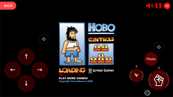 2、摇杆控制流浪汉移动,配合虚拟按键控制技能释放,简单易玩,多种劲爆技能等你来使用。