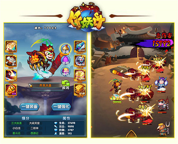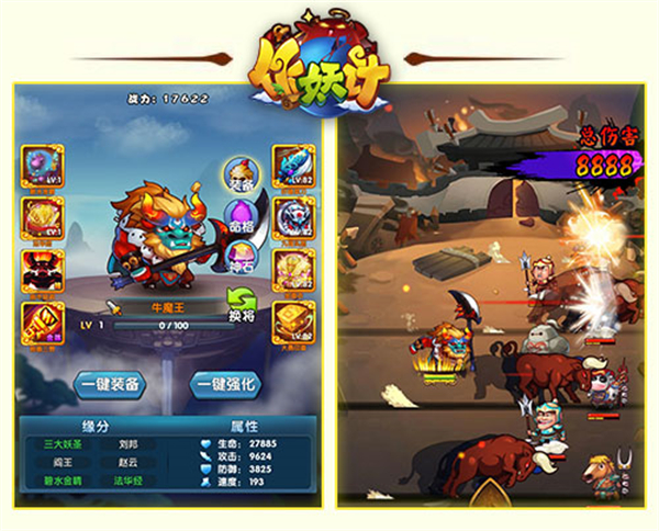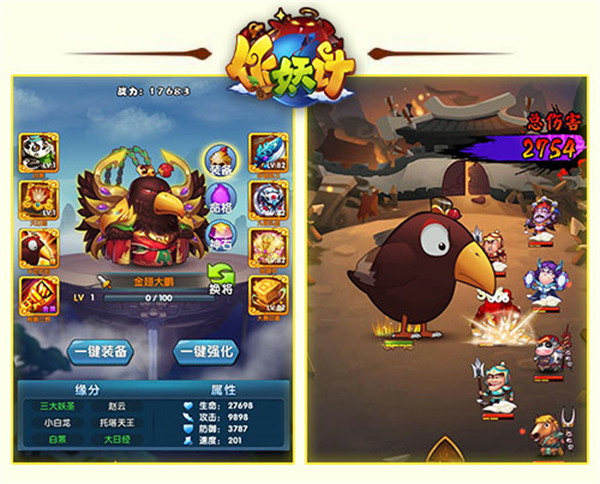 本作还为玩家提供了爆笑的人设,如健身少女大小乔、霸道总裁玉帝、猫娘孟婆等,都能够被随心招募。作妖计游戏背景设定在一个奇幻的仙侠征战世界,在这个世界中,玩家能够收集封神榜、三国、西游里面的各种仙侠武将,挑战各个副本关卡,体验爆笑游戏剧情。