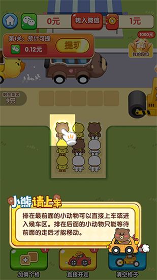 新颖独特的消除玩法,小手一点,同色小熊瞬间集结上车,成就感满满!