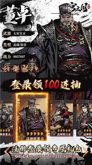 宫三国官方版手游是一款国风水墨画风的三国放置策略手游。游戏玩法丰富多样,包括内政系统、战斗系统、武将系统等多个方面,内政系统中,玩家需要建设和升级自己的主城,提高资源产量和军队实力;战斗系统中,玩家可以派遣军队和其他玩家征战,掠夺领地,也可以挑战副本参与世界BOSS战等活动;武将系统中,玩家可以招募、培养和升级武将来提升自己的战斗力。游戏玩法多样,让玩家能够享受到特色三国放置乐趣。