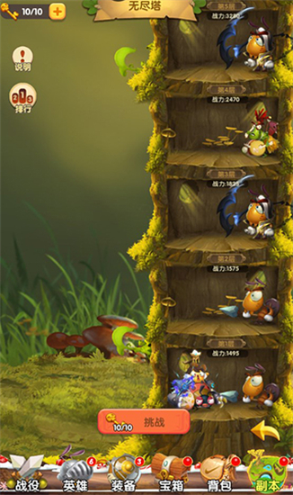 游戏除了闯关外,还可以进行副本挑战,也就是无尽塔挑战,每过一关都能获得丰富的奖励,可以帮助你快速的提升战力。