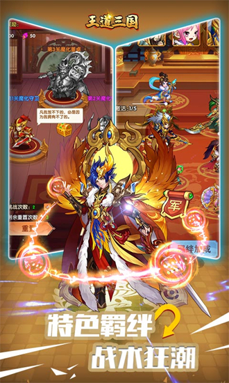 此外,游戏中加入了众多历史名将、名城以及经典战役元素,如刘备、曹操、孙权等,玩家可以通过根据武将的独特技能和属性,搭配合理的阵容,并根据占据的变化,合理利用策略与智慧战斗。王道三国游戏中可以发展城池、制定战略来争夺天下,玩家将在这个烽火连天的乱世中体验真正的三国战斗。本款游戏绝对值得一试,属于三国策略卡牌游戏中的佳作,感兴趣的玩家快来下载吧。