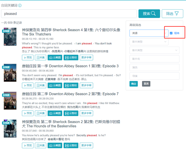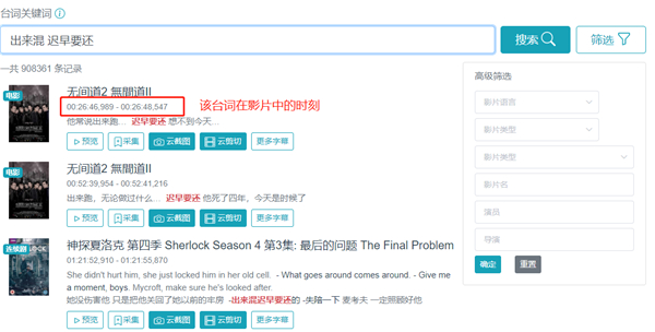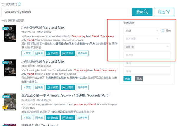 不仅如此,该软件还提供了大量的视频素材供用户自由选择,用户可以保存自己喜欢的台词视频进行剪辑。如果你是一名自媒体创作者,你就可以用它来快速收集素材,如果你是一名英语老师,它就能帮助你找到相关句子和词汇的使用场景,总之这是一款非常不错的素材软件应用,有需要的小伙伴们欢迎前来本站下载使用!!