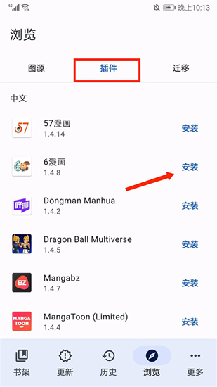 2、选择需要的漫画插件进行安装,这里以6漫画为例。