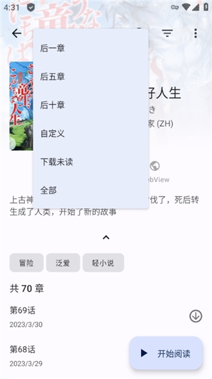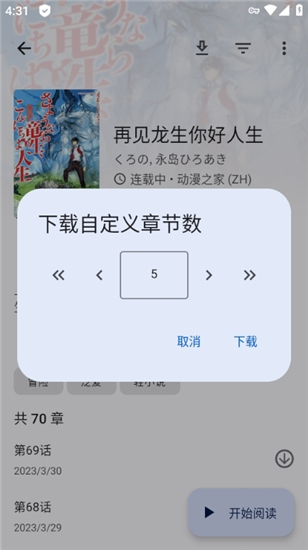 2、然后在这里就可以快速选择要下载的内容了,可以下载后面十章,也可以下载未读的内容。