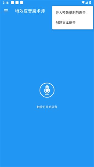 4、分享给好友,一起体验变身快乐。1、打开从本站下载的软件,触按可开始录音。