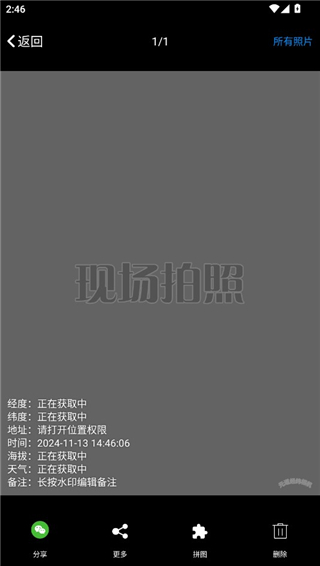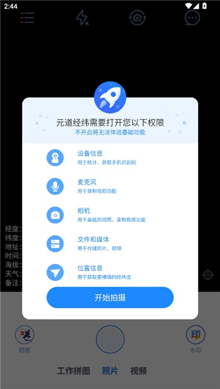 元道经纬相机官方正版是一款功能丰富的手机拍照软件,与其他的美颜相机不同,这里并不能对照片进行美化修改,照出来是什么样子的就是什么样子,软件的主要功能在于可以给照片自动添加信息水印,比如经度,纬度,地址,时间,海拔,天气等,当然了,这些信息是可以自定义的,将自己想要展示的信息以水印的方式出现在照片上面。同时,软件还有着拼图功能,能够将不同的照片进行拼接,并添加上各种各样的信息,非常适合用于汇报工作,将所有的信息全部展示在拼图中,而且还支持打印功能,可以直接将拼图打印出来。