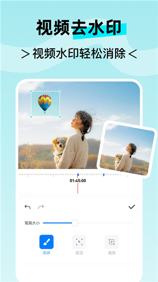 什么去水印软件比较好用?这里推荐大家使用水印云手机版app,它是一款体积小巧,功能强大的图片、视频处理软件工具。此软件整体页面简洁清爽,使用操作即便,用户只需导入需要去除水印的图片文件,然后进行涂抹消除水印即可完成,十分方便,即便是对于毫无p图经验的新手用户也能够轻松上手使用。而且,除了图片去水印外,还有视频去水印、智能抠图、视频拼接、变速播放、视频倒放等其他更多丰富图片、视频处理功能,可以说是十分强大了,能够很好的满足广大用户们的不同使用需求。
