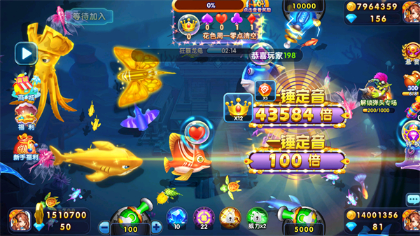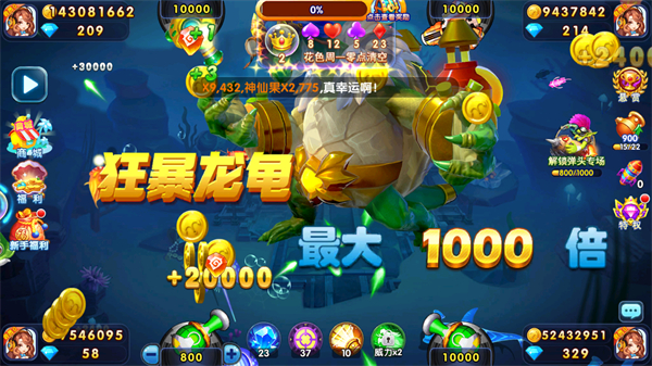 2、渔场新增神秘奖励,捕鱼即送神秘大礼,各种头顶奖品的小鱼,捕到它们奖品就是你的!
