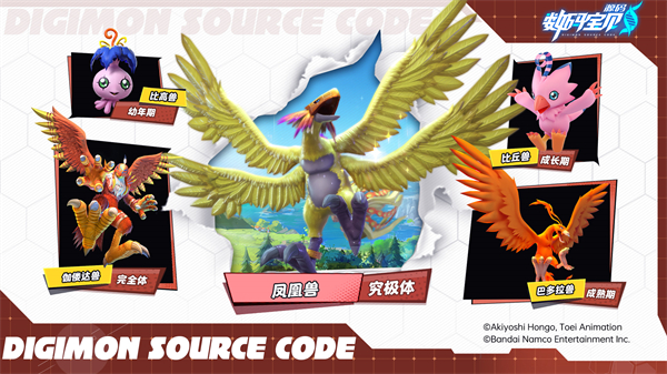 数码宝贝源码手游是由东映动画正版授权的一款角色扮演游戏,采用了数码蛋孵化的形式,可以孵化并培养、进化出战力爆表的究极体。玩家的收集过程也非常简单,可以在游戏大地图免费发现并获得各种数码蛋,还能在这个数码世界中冒险,挑战各种副本,享受无尽的探索乐趣。