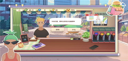 旅行餐车游戏是一款手绘风格的经营养成类手游,玩家将会驾驶着自己的汉堡车前往世界各地,并购买各种各样的食材来制作不同的汉堡,在开店的时候会吸引顾客,通过与客人进行互动来了解顾客的要求,并根据要求来制作对应的食物,除开制作食物之外,还可以与顾客进行聊天,了解当地的美食文化等。同时,游戏中还加入了大量的任务,玩家完成对应的任务之后可以获得大量的奖励,如钞票,钻石,积分,体力等,可以帮助玩家提升汉堡车的等级。