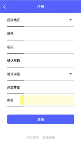 2、如果您是新用户,点击底部的立即注册按钮,输入所属地区、账号、邮箱、密码、验证问题、问题答案,然后等待当地低保管理部门审核通过就完成了注册。