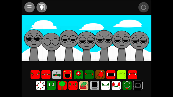 同时,游戏模式也为玩家进行了进一步的优化,支持横屏全屏展示,并且提升了游戏的加载速度,启动就能立马开始玩。恐怖模式也同样加入了色彩鲜明的节日风格,喜欢的小伙伴们不要错过,一定要来试试,圣诞节马上就要到了,赶快来下载体验这款节奏盒子sprunki圣诞节版本吧!FUN tmie!1、个性化装扮:将圣诞帽、圣诞发箍、衣服服饰等装饰物放在人物身上,创造圣诞风格角色。