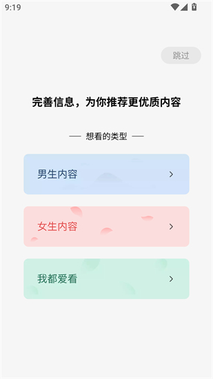2、选择你想看的类型:男生内容、女生内容、我都爱看。