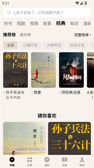 5、在经典板块中,用户可以看一些经典书籍、人物传记、社会文化、心理疗愈等。