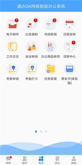 通达OA手机版是专为企业用户提供的一款便捷的自动化协同办公软件应用。软件页面简洁,功能强大,为用户提供了一系列的办公服务,如考勤、消息、通讯录、邮件、工作流程、审批等等,涵盖了企业日常办公的各个方面,能够很好的满足不同用户使用需求。而且软件使用操作简单易懂,各个功能模块即点即用,并支持手机、平板、电脑多端通用,方便用户随时进行协同办公,十分方便。